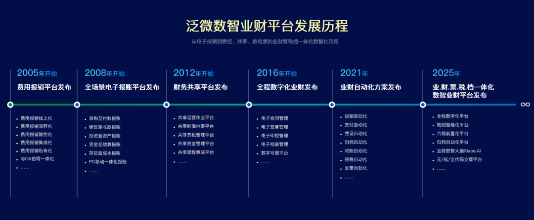 【业财】泛微数智业财平台的发展历程:从电子报销到费控、财务共享、业财自动化到「业.财.票.税.档」一体化
